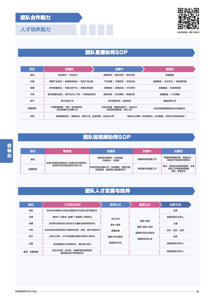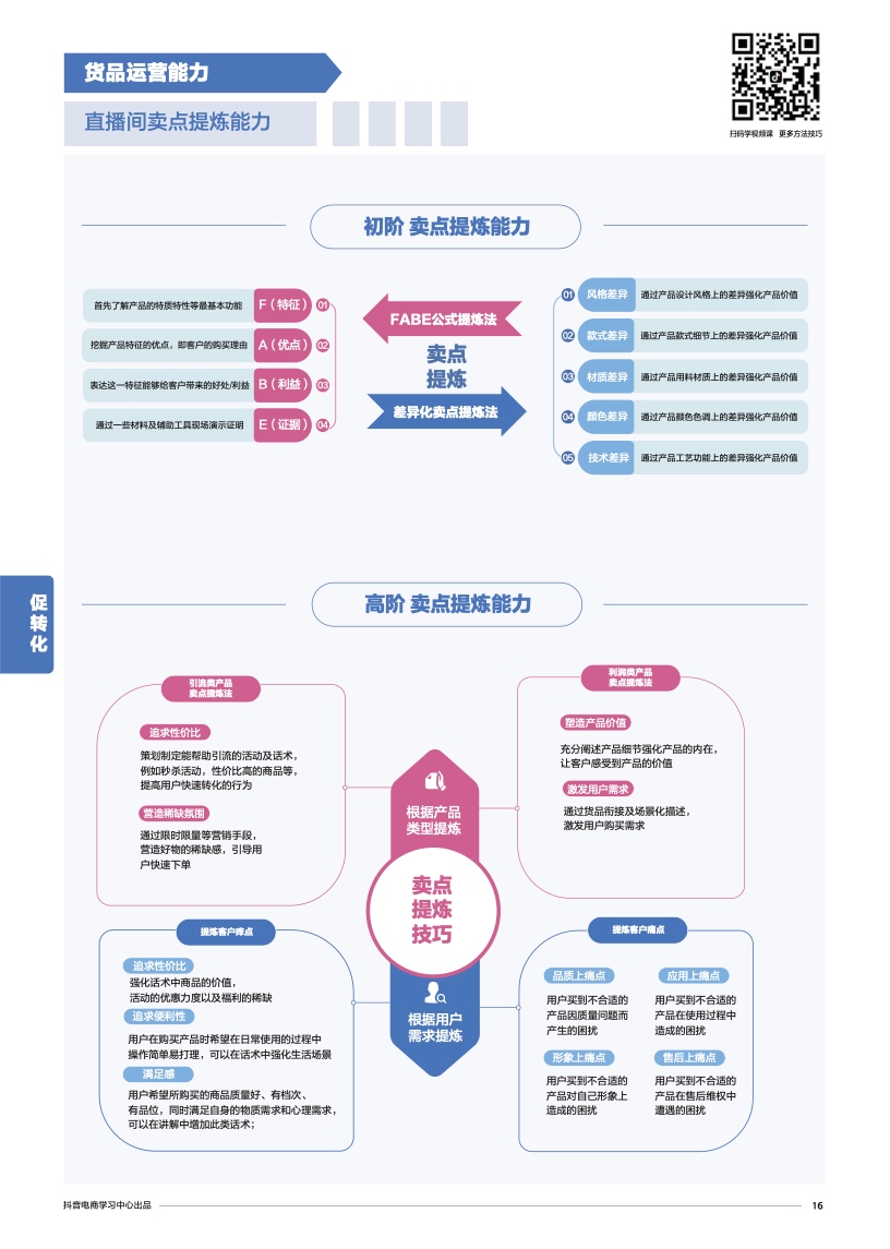 为助力商家更好做好店铺经营,抖音电商学习中心推出抖音电商商家能力项经营指南,从强阵地、汇流量、促转化、聚沉淀4大维度着手,以「实操手册」的指导方式,帮助商家快速找到各阶段问题的应对措施,从而加速链接用户与生活,为引入/准备期、新手探索期、成长期、成熟期的商家提供更多生意新可能。同时,每部分均配有微课的二维码,方便商家扫码学习详细的知识点。