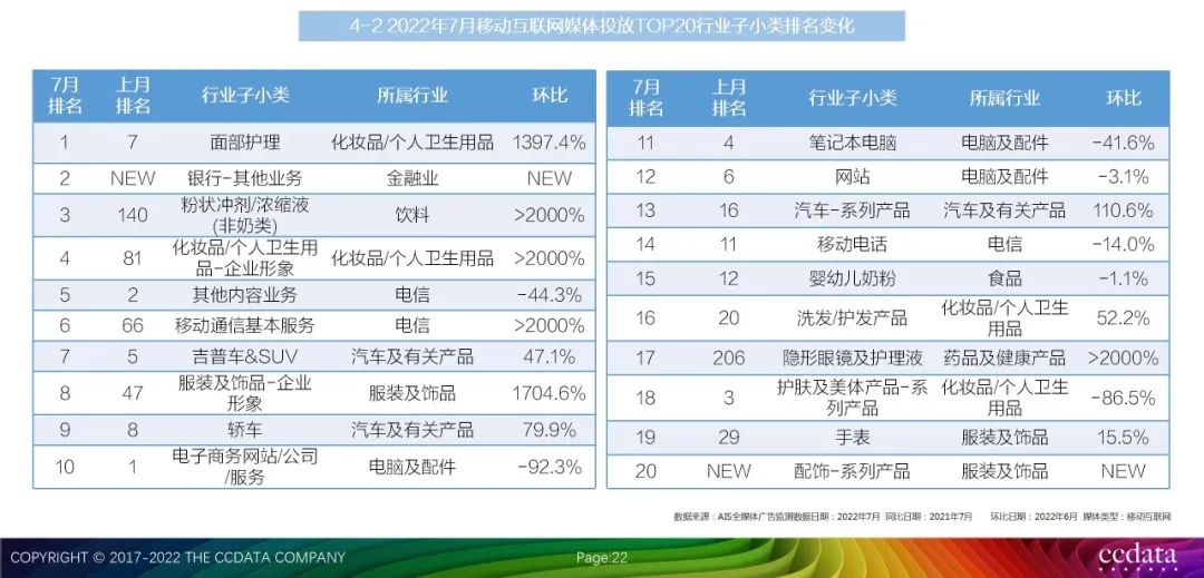 CCData:2022年7月全媒体广告市场投放盘点