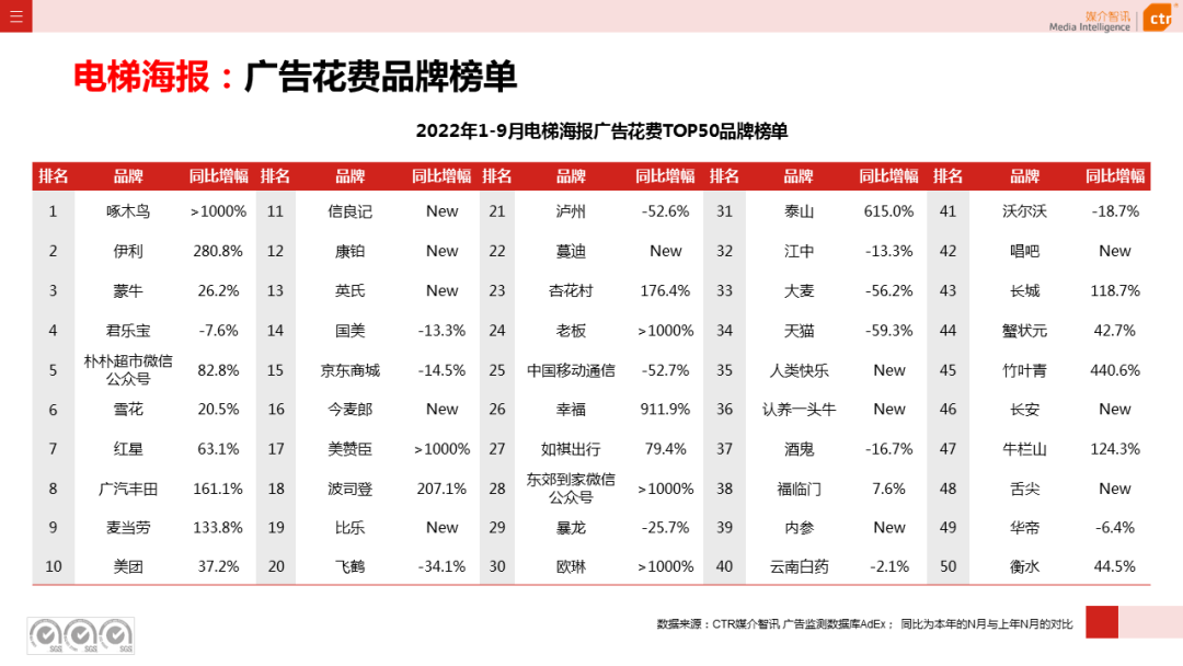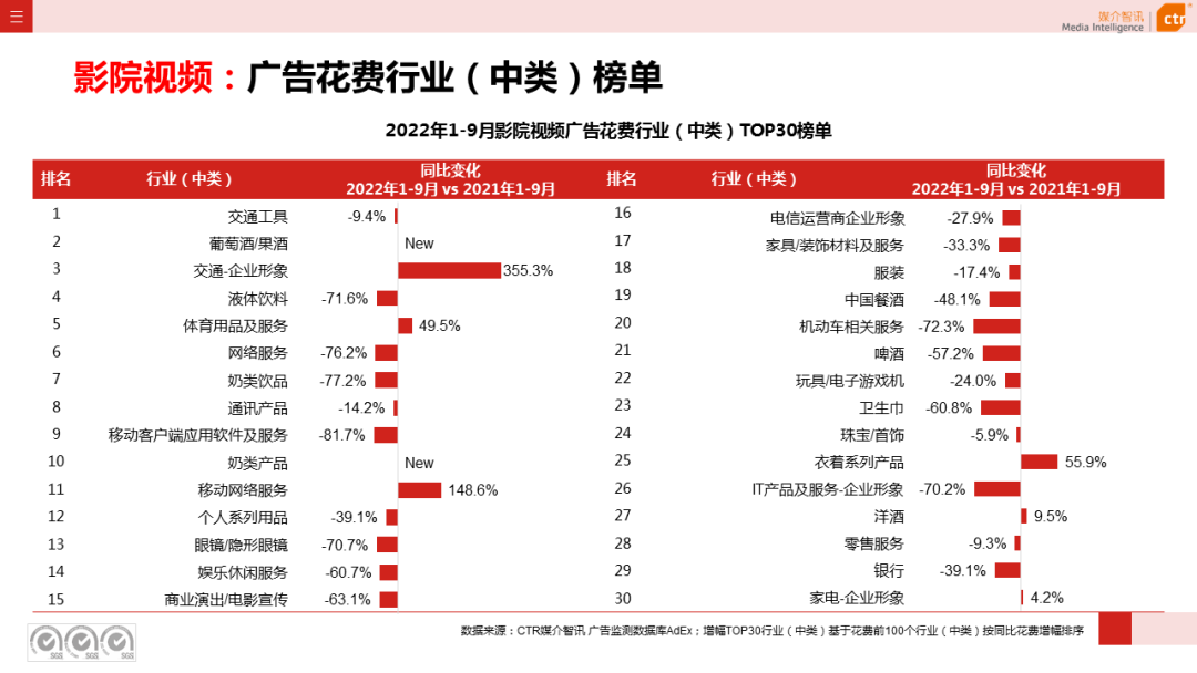 CTR:2022年1-9月传统户外广告同比减少30.0%