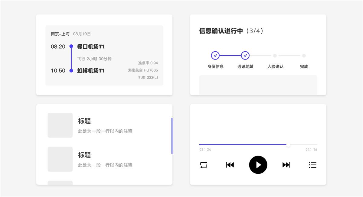 时间维度可以引申到界面中的时间轴、步骤条、加载条和音视频中的进度条等,这类维度通常需要加入点元素,通过点的向心性辅助定位。空间维度则引申到滑动页面时出现的滚动条等。