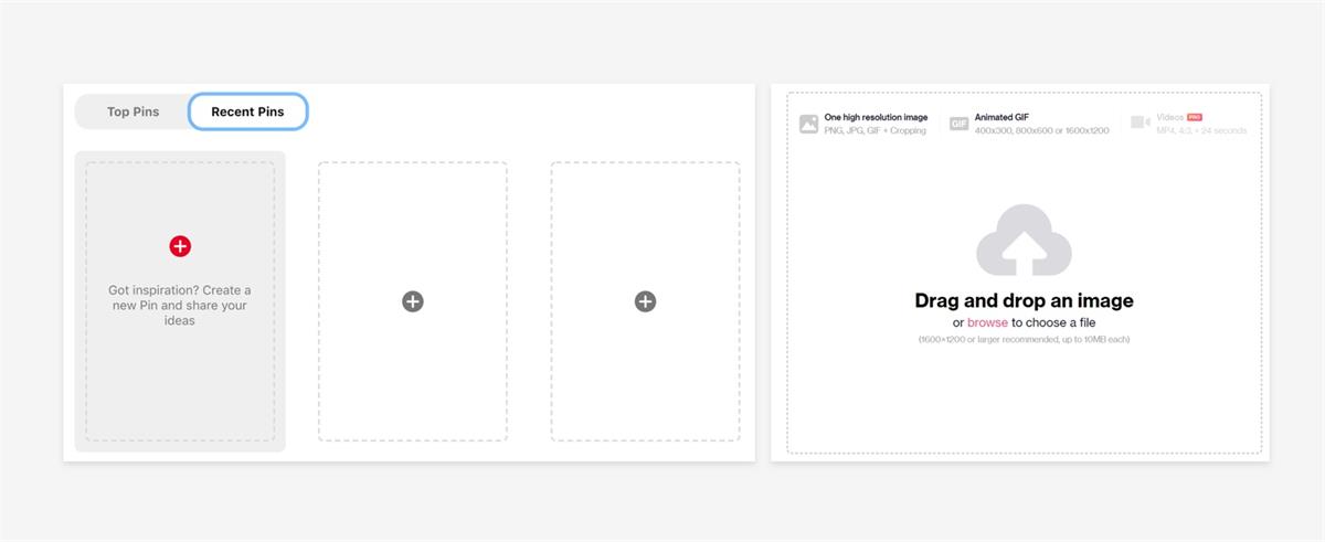 比如 Pinterest、dribbble 以及 AntD 的图片类 upload 组件,都采用了这种设定。
