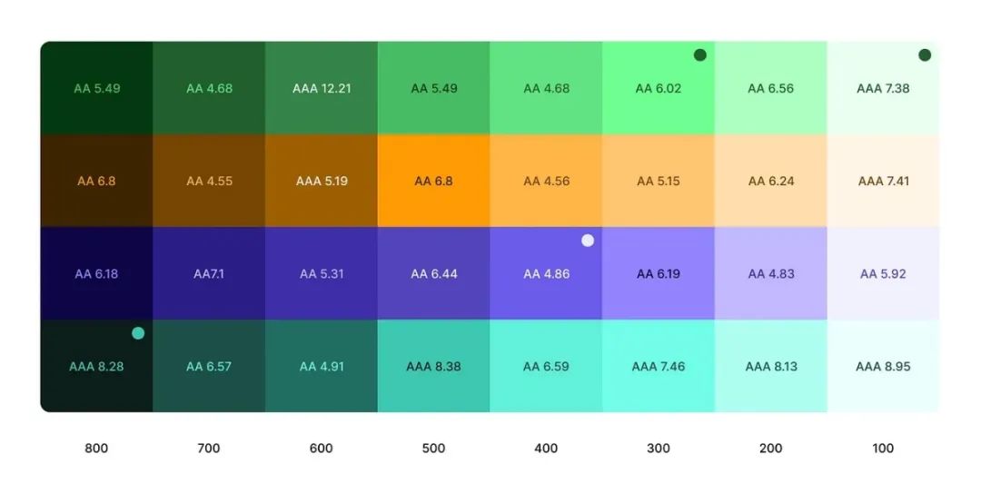 原子颜色有更实用的名称,比如绿色.200,紫色.500,因为没有人能记住#7748F9。这些原子名称不提供任何关于如何在系统中使用它的信息。