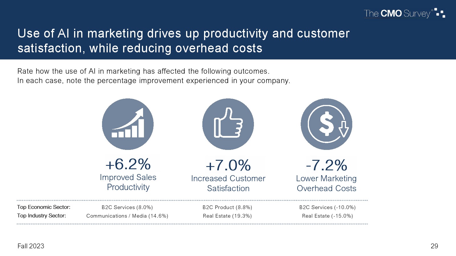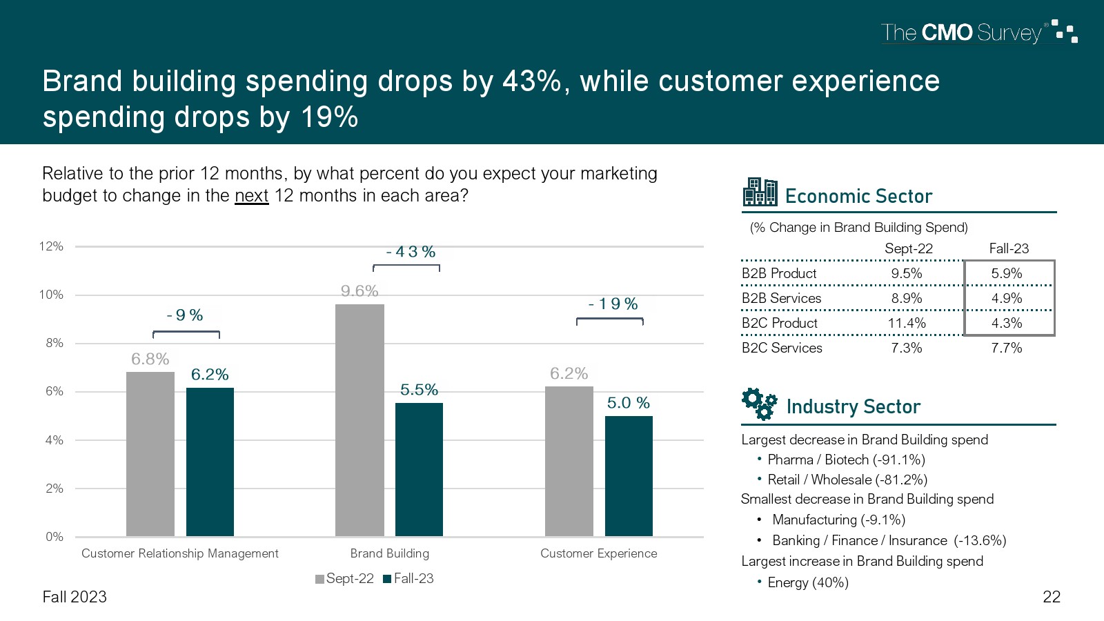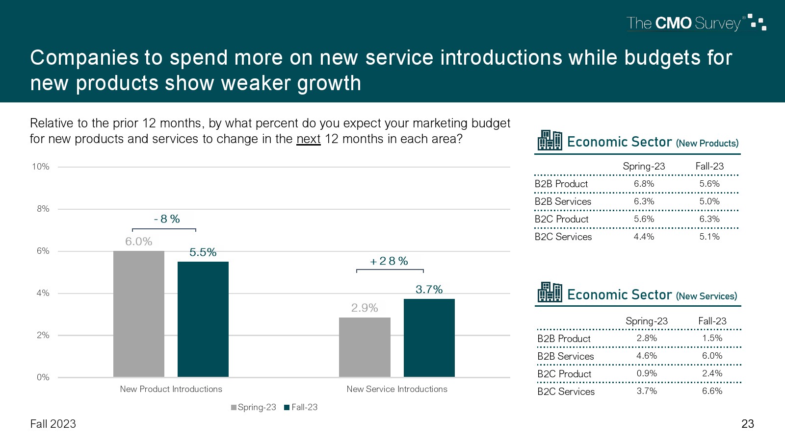 德勤在最新一期的“2023年秋季CMO调查”中发现,与几年前相比,美国首席营销官不太可能感受到来自首席执行官和董事会的压力,但他们对首席财务官的看法却不一样。约52%的受访者表示,来自首席财务官的证明营销价值的压力越来越大,而几年前这一比例为45%。