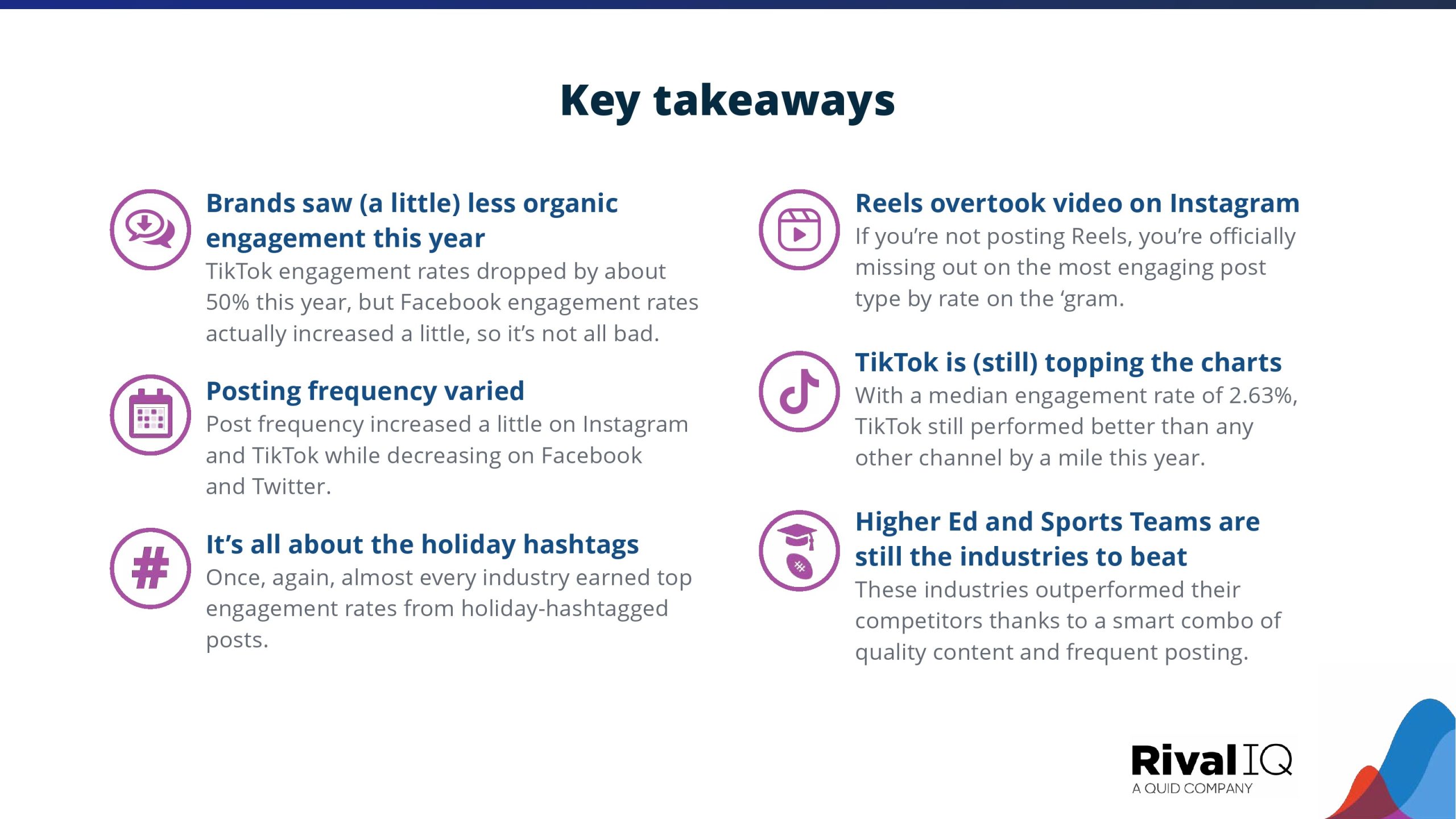 几乎每个行业都从带有假日标签的帖子中获得了最高的参与度。