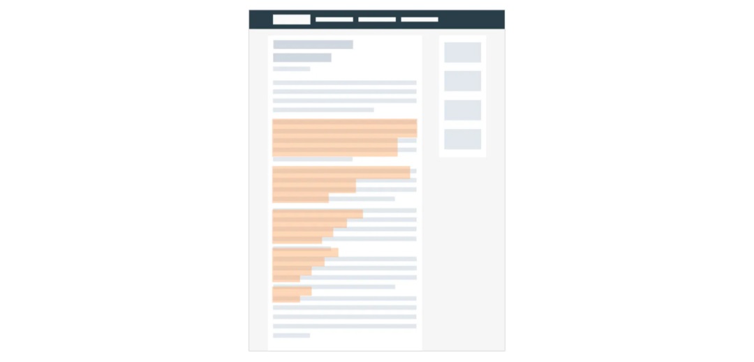 尼尔森诺曼集团发现,79% 的人经常会以扫描的形式浏览遇到的任何新页面,只有 16% 的人会逐字阅读新页面。当用户以非线性的方式处理内容(跳过部分以找到需要的重要信息)时,可判断用户正在以扫描的形式获取信息。