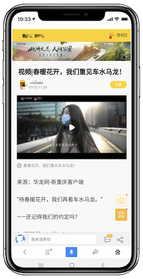 面积:顶部嵌入广告面积必须小于首屏面积的10%
