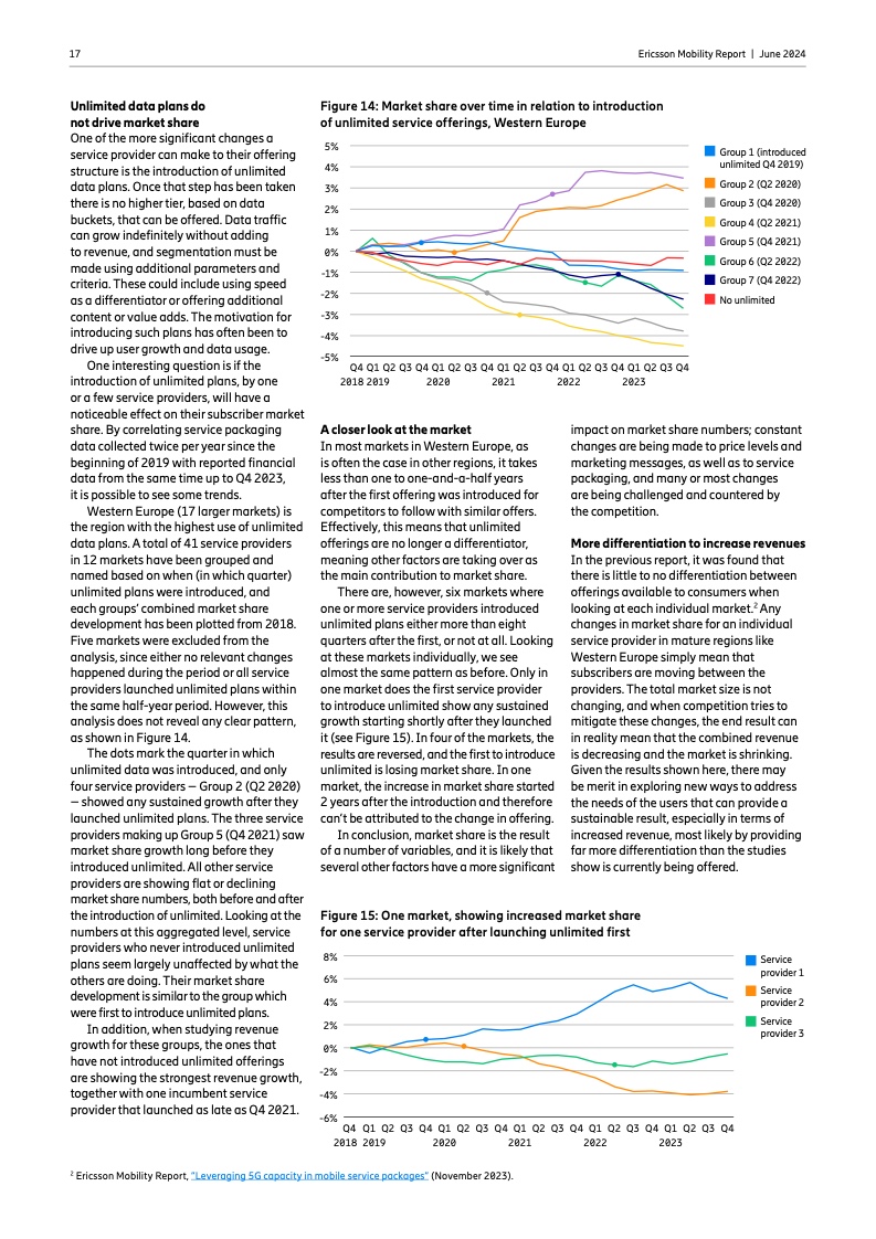移动宽带用户数量在本季度增长约1亿人,达到77亿人,同比增长5%。移动宽带占所有移动用户的89%。