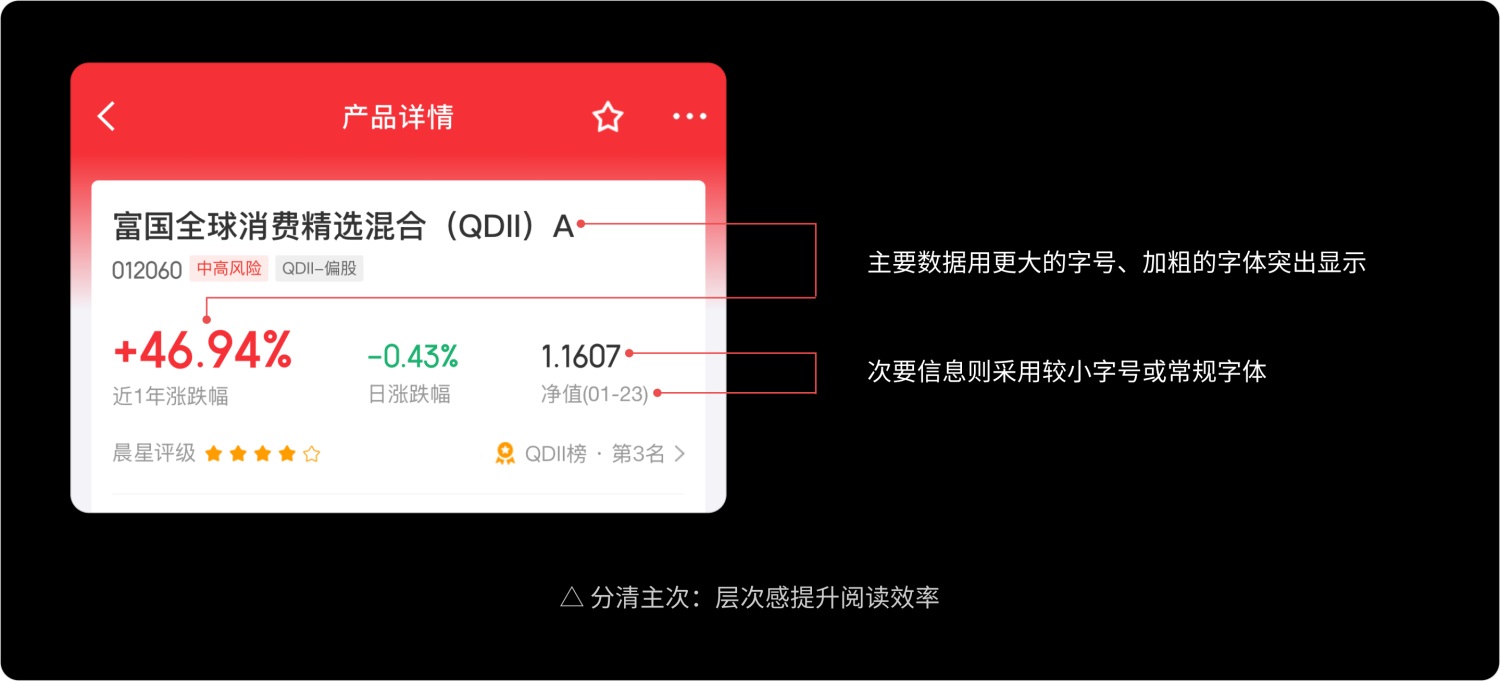 在金融界面中,清晰的视觉层次是高效信息传递的基础。字体搭配的关键是分工明确,既要突出重点,又要整体和谐。