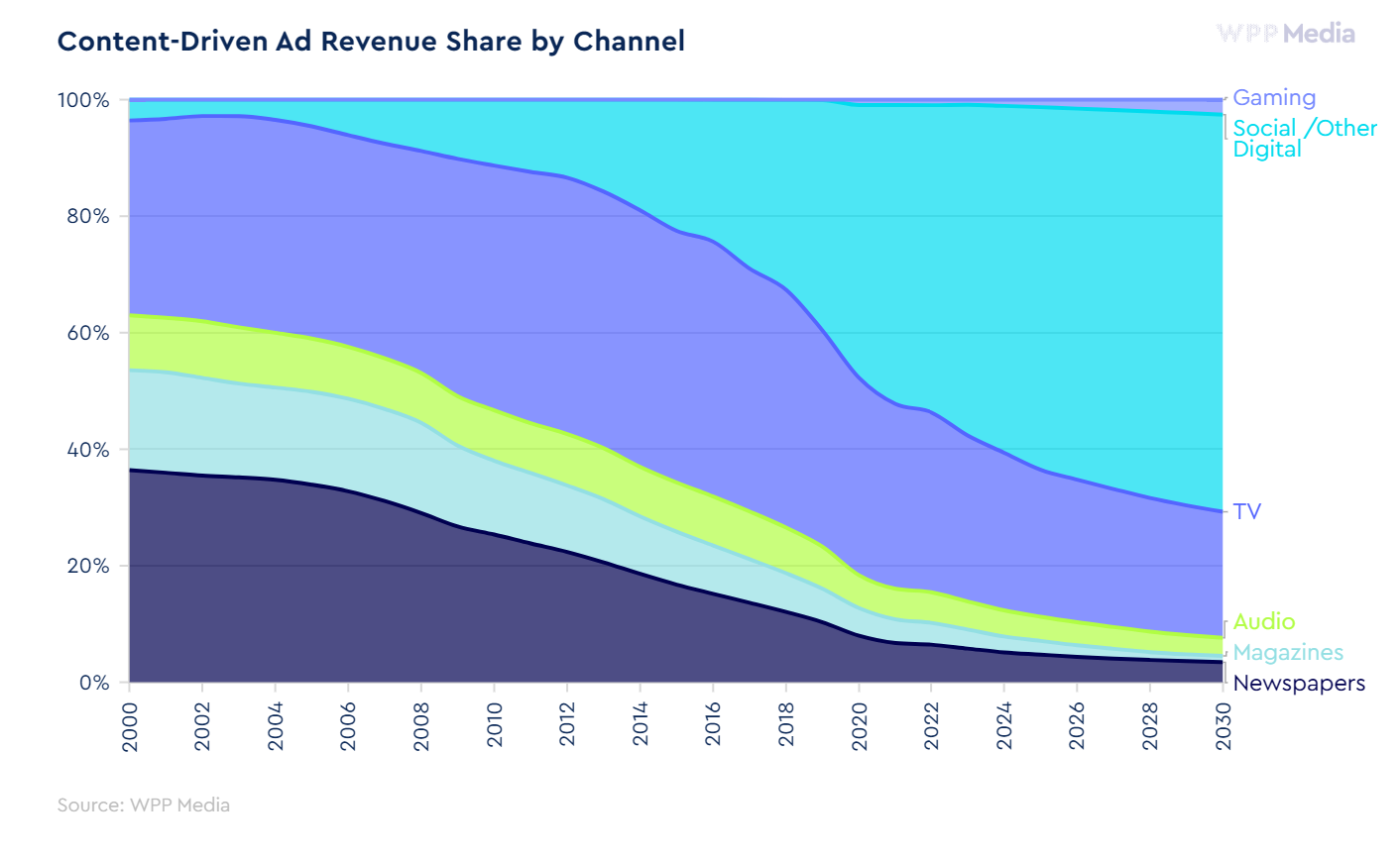 Schumpeter)提出的”创造性颠覆”。流媒体视频持续侵蚀传统电视的市场份额,零售媒体从传统数字渠道夺取预算,而人工智能驱动的答案引擎正开始重塑搜索行为。与此同时,创作者驱动的内容持续取代专业制作的媒体,迫使业界重新评估既定模式。