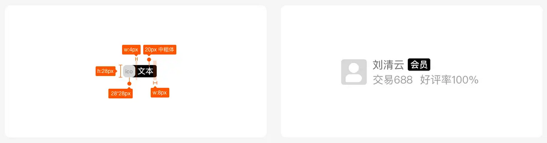 主要用于会员业务的身份及等级标识,多适用于人/姓名后展示,多以图形或者图形+文本的样式展示