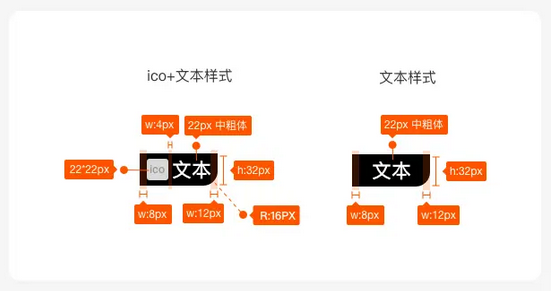 主要适用于业务功能营销转化引导,展示样式主要有:文字后加标签、信息功能上部加标签,对比鲜明,在某些场景使用上和徽标类似,除了对其识别造型统一外,还应对其使用场景加以明确: