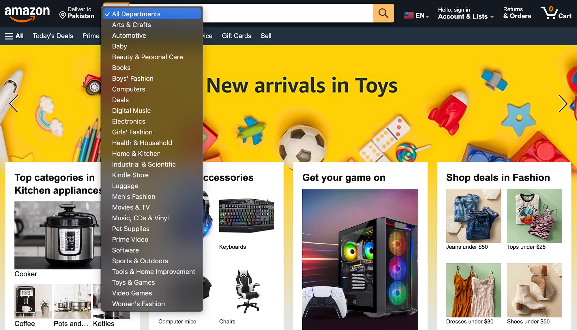 Amazon在建议框中同时展示搜索历史和相关建议。